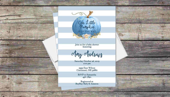Pumpkin Baby Shower Invitation Baby Shower Blue Pumpkin Digital File Printed Invitations Halloween Baby Shower Fall Theme Shower By Pink Sugar Party Shop Catch My Party